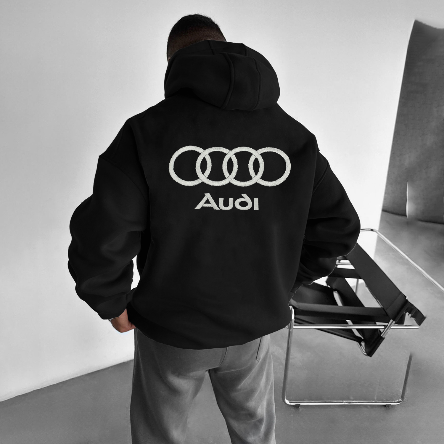 Men's Casual Racing Lettering Embroidered Hoodie
